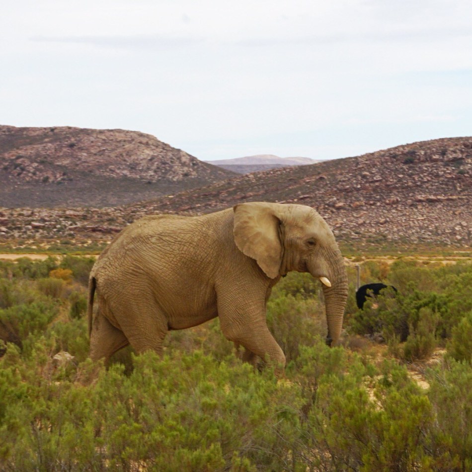 Burada birkaç kadeh prosecco ikramı sonrası turun sonuna yaklaşırken esas oyuncuları görüyoruz: iki adet Afrika fili. Tüm görkemleriyle uzaktan salınarak geliyorlar ve onların peşine takılıyoruz. Afrika usulü trafik böyle oluyor demek ki. : ) Yanda koşuşan devekuşu sürüsü ve önümüzdeki görkemli filler ile turumuz sonra eriyor ve Cape Town’a doğru dönüş yolculuğumuz başlıyor.