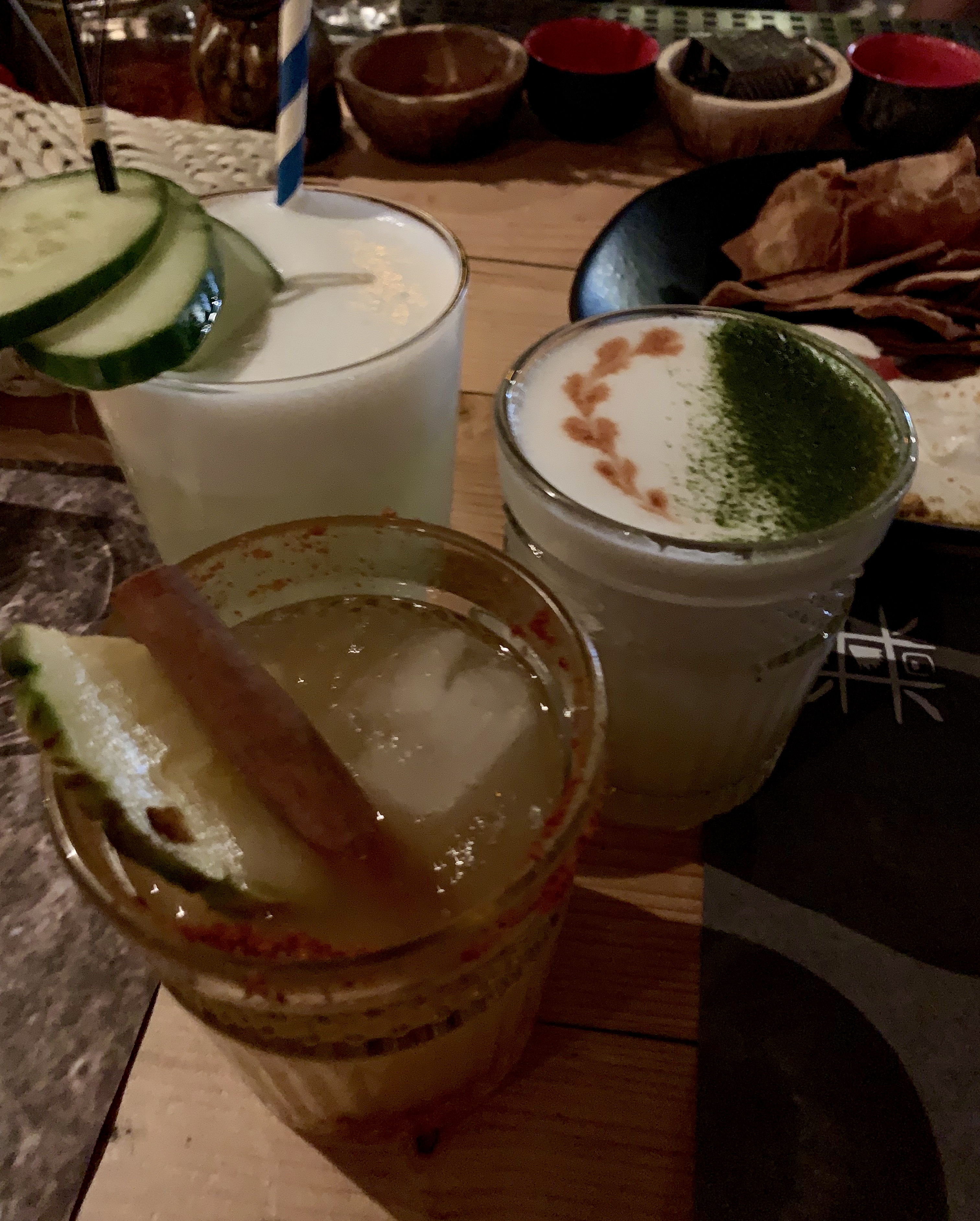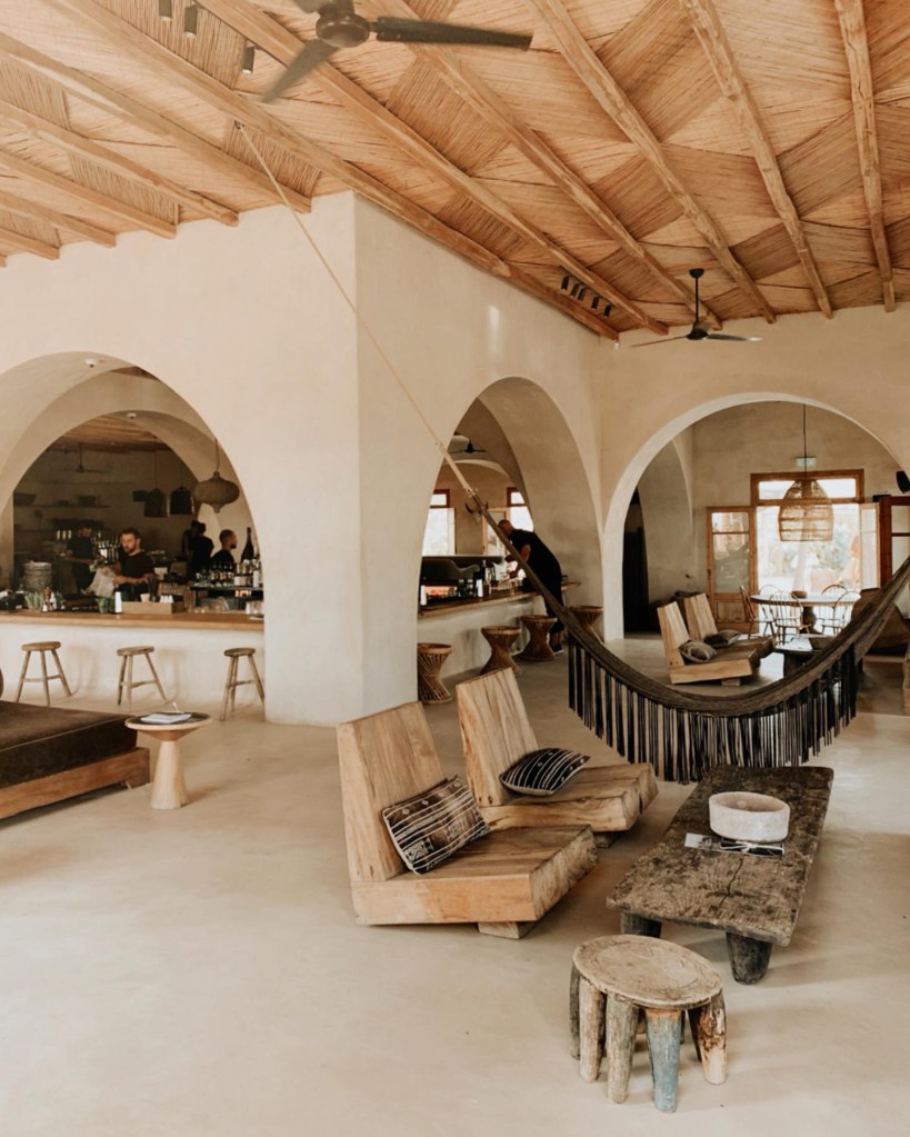 Biz yanlışlıkla Cumartesi akşamı gittik ve mekan baya tenhaydı. Mekanın genel olarak bohem bir havası var; Beach of Momo/Before Sunset ve Tulum karışımı diyebilirim. Barında kokteyl içip bir şeyler atıştırdık ve yemek için gelmenizi kesinlikle tavsiye edebilirim. Hem yediklerimiz çok lezzetliydi hem de farklı kokteylleri.