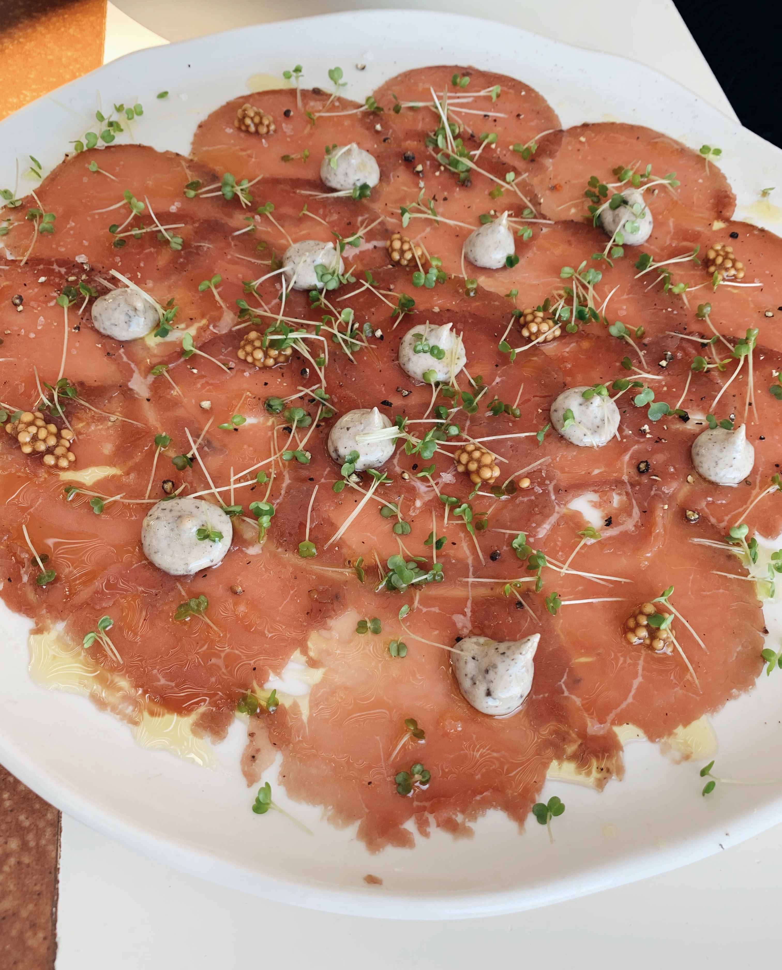 Öğle yemeği için hem üstü kapalı bir restoran kısmı hem de bahçe tarafı var. Ayrıca ayakta durabileceğiniz bir bar alanı da bulunuyor. Anladığım kadarıyla normalde üstü kapalı olan o restoran kısmı daha popi ama özel bir event olduğu için orayı kapatmışlardı, ama zaten bahçe kısmının ambiyansı daha güzel. Yemeklerin hepsi muhteşemdi ve özellikle “patlıcan milföy”ü kesinlikle sipariş etmeniz gerekiyor. İsterseniz yemek sonrası masanızda da ayağa kalkıp dans etmeye başlayabilirsiniz veya bar kısmına da geçebilirsiniz.