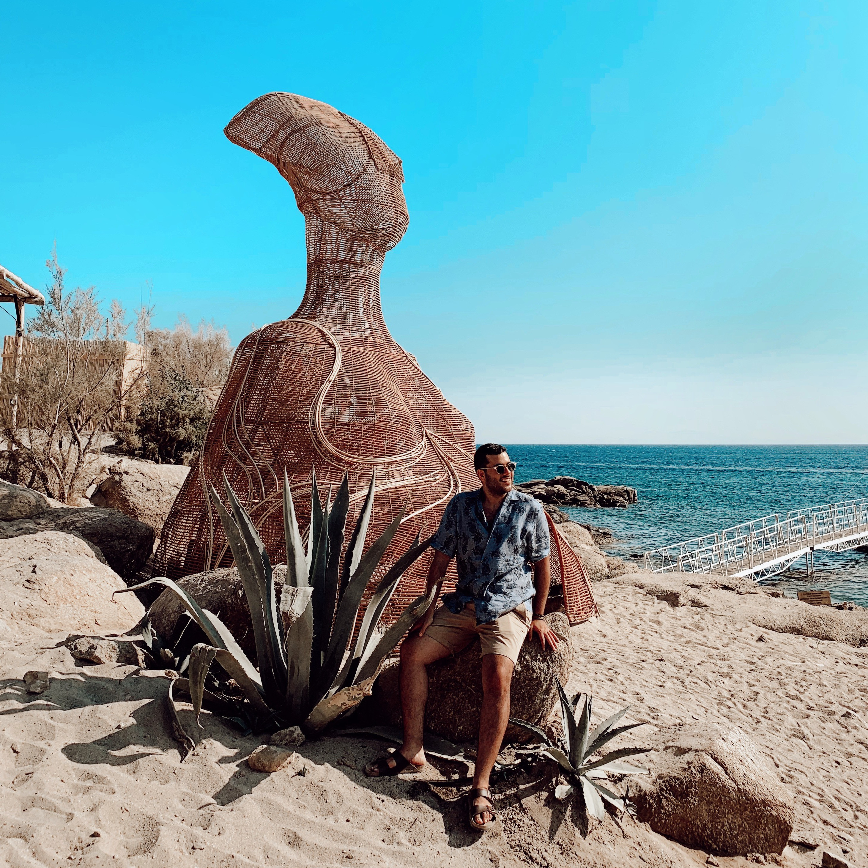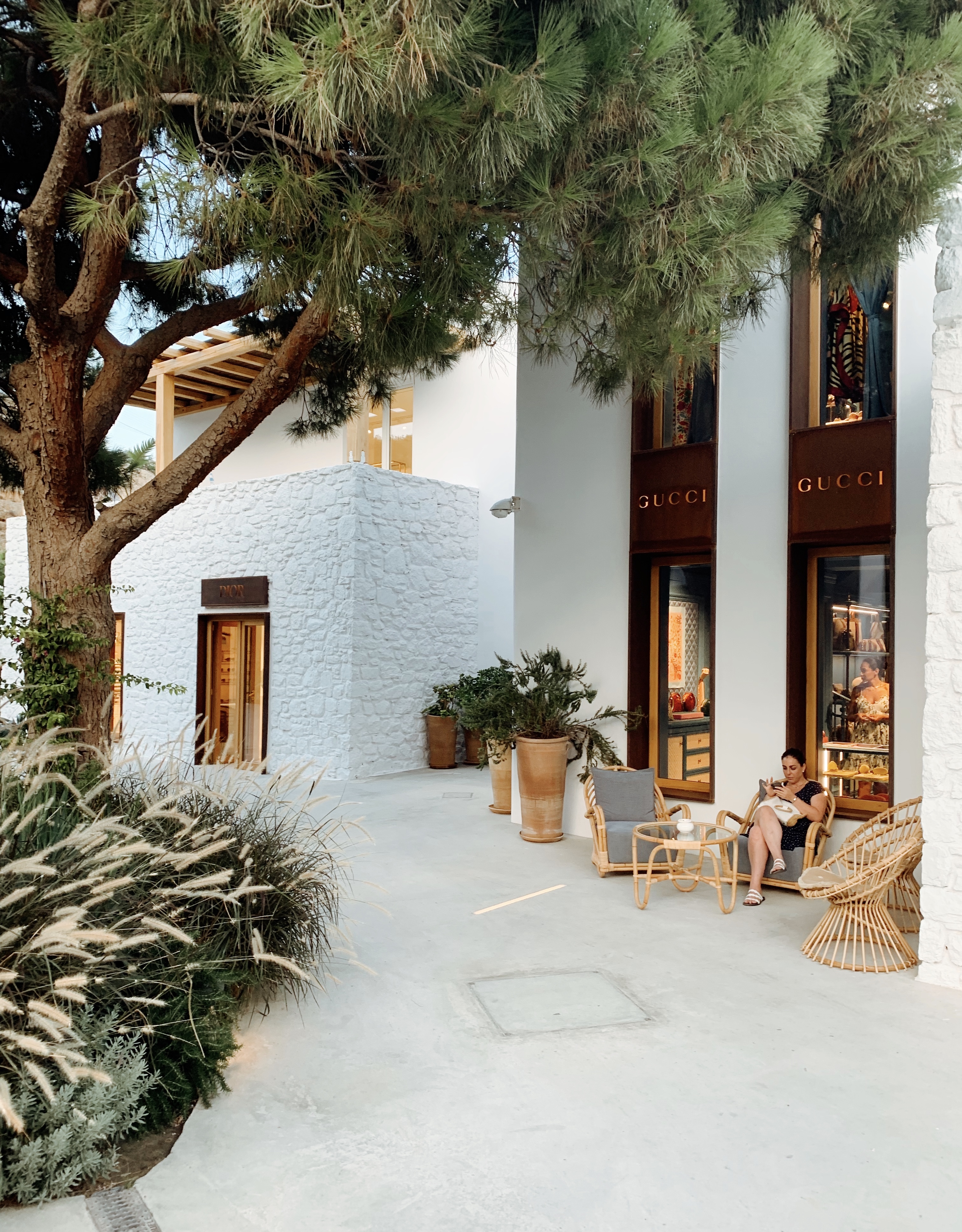 Nammos, 2003’te açılmış ve happy hourları ile Mikonos’un en ünlü beach club’larından biri. Geçtiğimiz senelerde ise hemen girişinde açılan kocaman “Nammos Village” isimli lüks ve butik AVM kısmı ile “beach club” kavramını apayrı bir boyuta taşımış durumda. Louis Vuitton’dan Gucci’ye bir sürü lüks markanın butikleri ve Londra’da şubeleri olan ünlü sanat galerileri dolu bir alan burası. Sanatçıların enstalasyonlarının sergilendiği bu alandan yürüyerek ilerliyorsunuz beach’e. Bir beach club’ın geldiği nokta olarak oldukça ilginç.