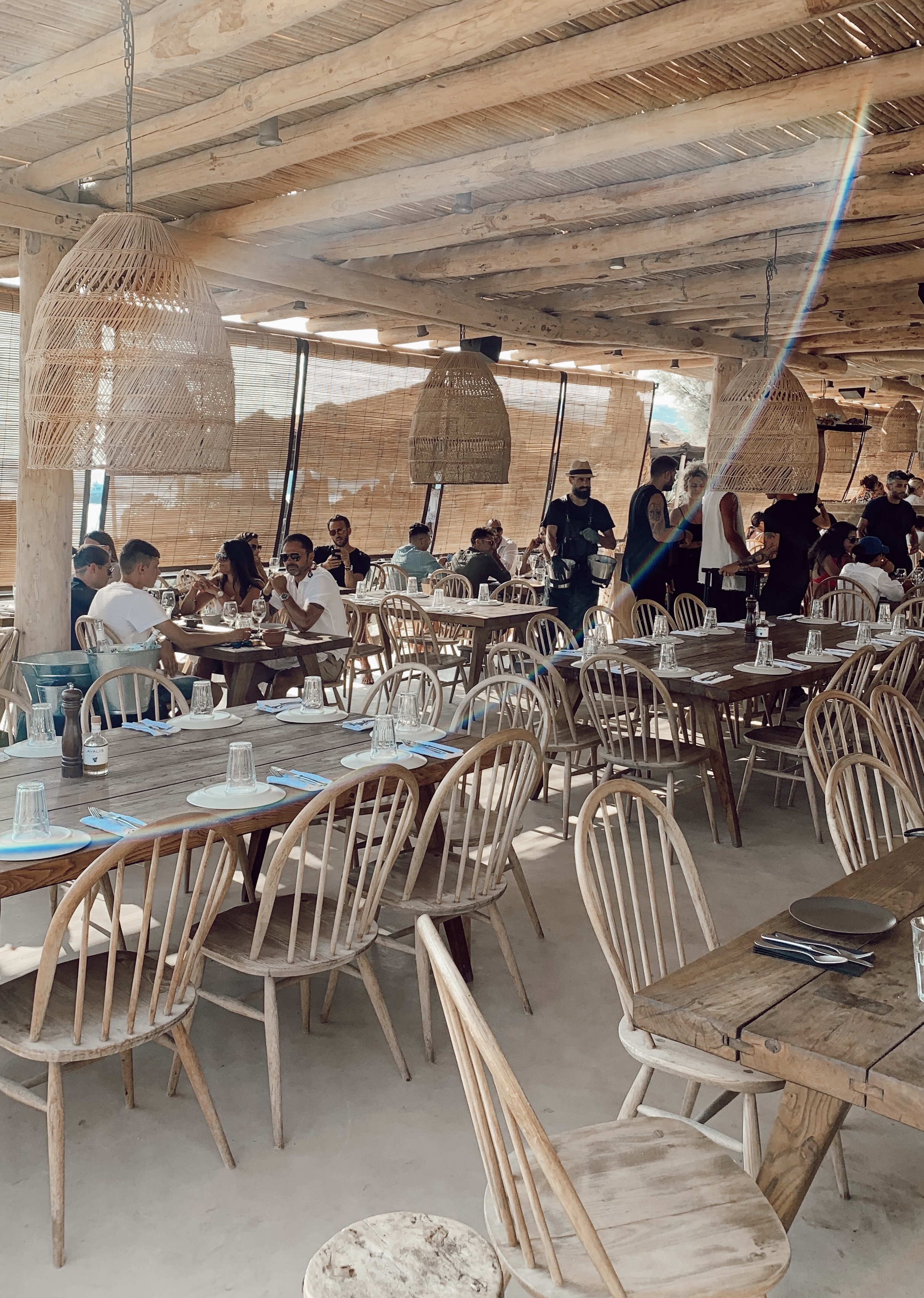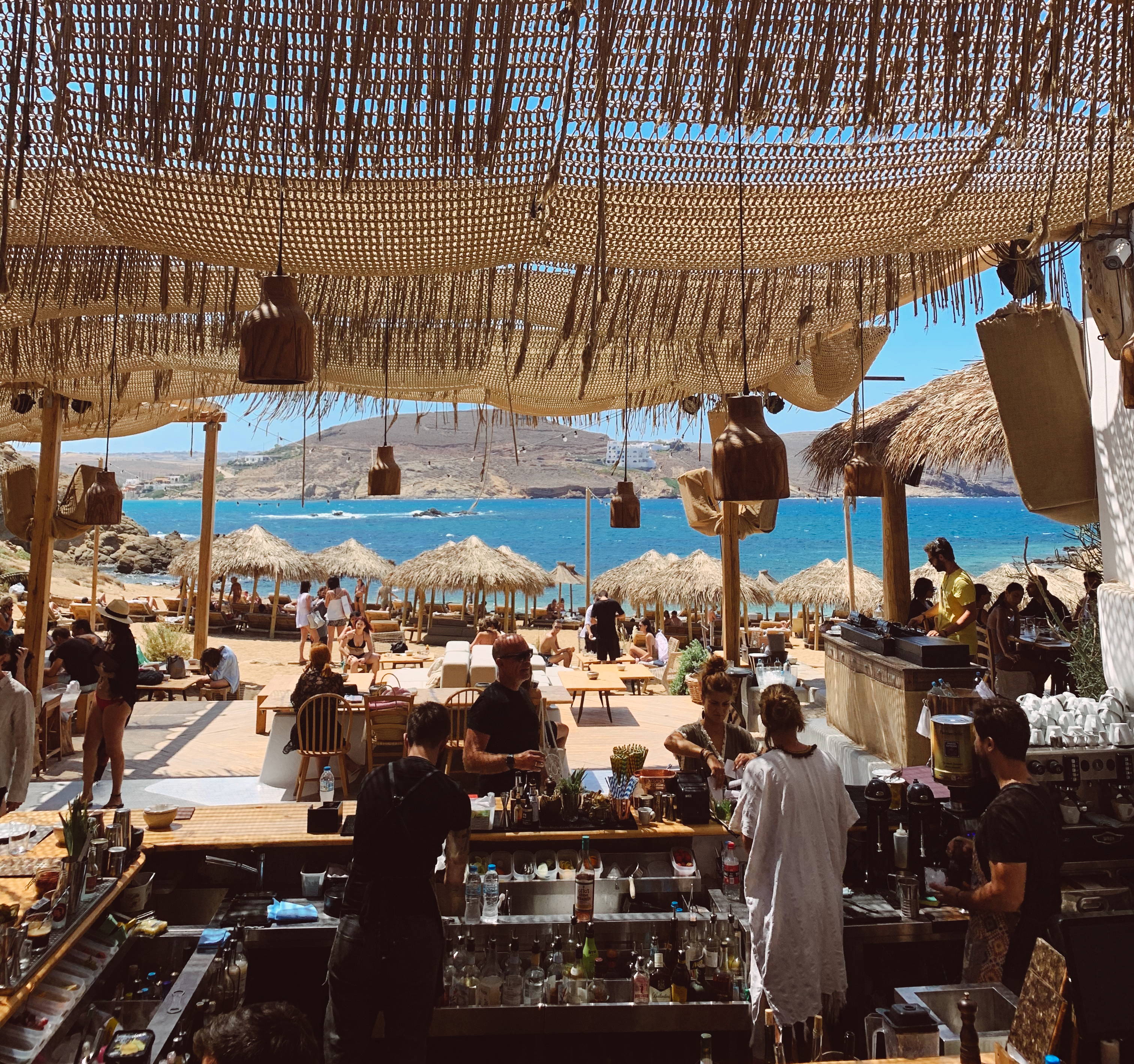 Nammos: Adanın en ünlü ve eski plajlarından biri. Geçtiğimiz yıllarda eklenen ve Gucci, LV gibi lüks markaların dükkanları ile uluslararası sanat galerilerinin olduğu “Nammos Village” kısmı ile bir “beach club”dan çok ötesi. Kesinlikle rezervasyon yaptırmanız lazım yoksa ortada kalma ihtimaliniz yüksek. Buraya doğrudan 4 gibi geç bir öğlen yemeğine gelip sonra happy hour’a kalmak en mantıklısı. Saat 5 gibi herkes ayaklarda oluyor. Denizi çok muhteşem değil.