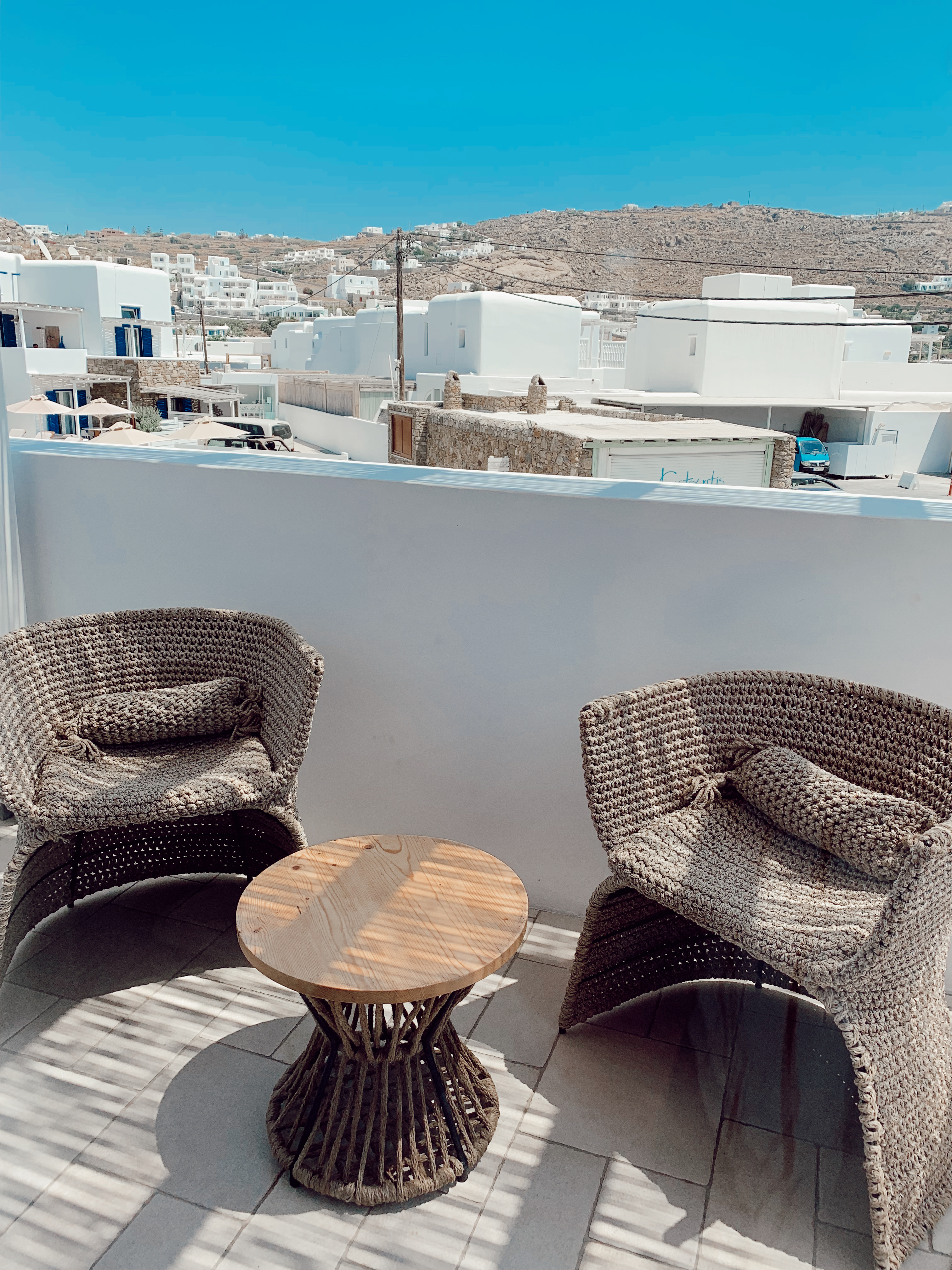 Kesinlikle “Mykonos Town” diye geçen şehir merkezinde kalmalısınız. Öncelikle güzel restoranlar ve gece hayatı hep bu şehir merkezinde, o yüzden gece otele nasıl dönsek vs. gibi dertleriniz olmadan rahatça yürüyerek dönmek en ideali. Biz, merkeze pek de uzak olmayan, Ornos Beach’te kaldık. Blue and White Suites diye airbnb/apart otel karışımı bir yerdi. Otel sahibesi Maria aşırı yardımsever ve tatlıydı. Kendisi aynı zamanda Fahri Brezilya Konsolosu, bu yüzden otelin girişinde bir Brezilya bayrağı var. 🙂