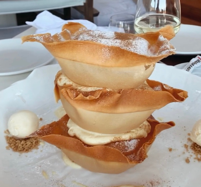 Denediğimiz tüm yemeklere bayıldık ama hiç yağ çekmemiş kalamar tavası, trüf kremalı dana carpaccio, isli musakka favorilerim oldu. Buranın meşhur tatlısından da söylemezseniz olmaz, tam Instagramlık.